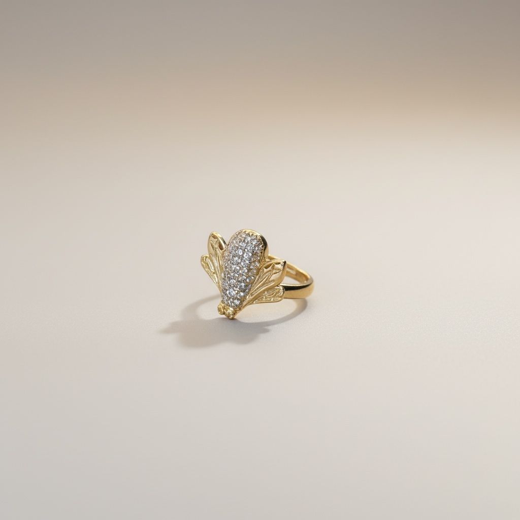 Arı Figürlü Gold Zirkon Taşlı Yüzük