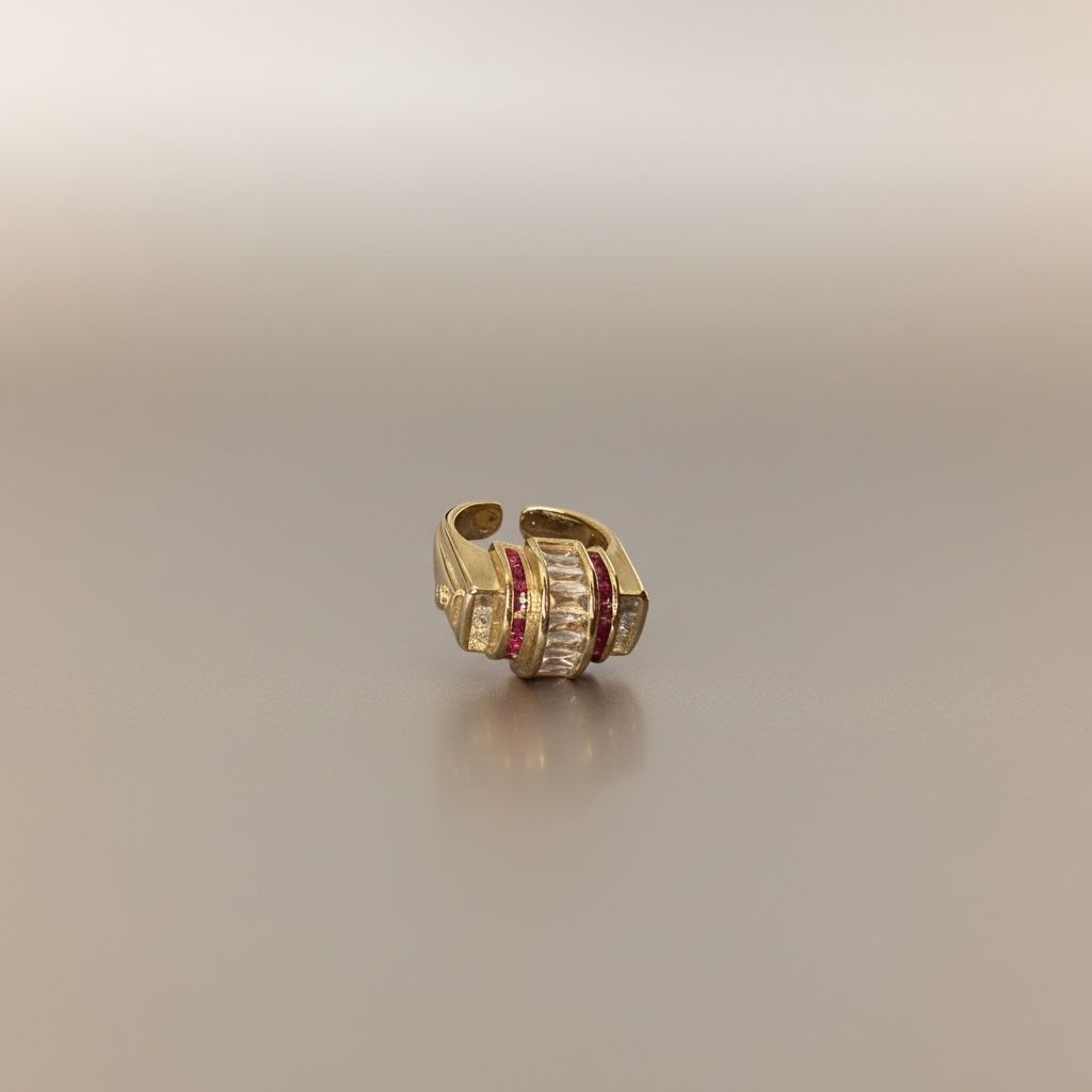 Baget Taş Detaylı Çok Sıralı Gold Yüzük