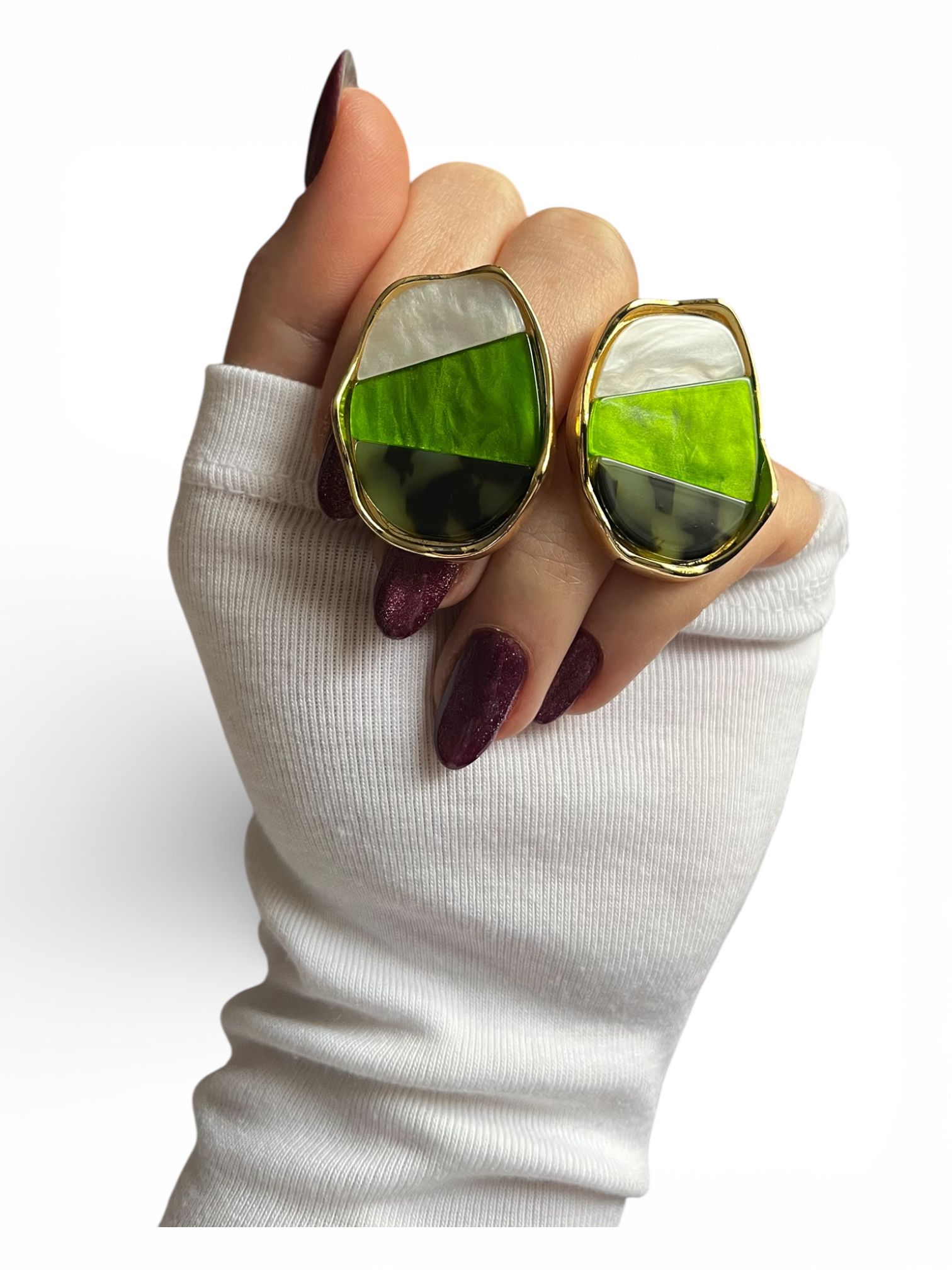 Üç farklı tonun harmanlandığı bu küpe, yeşilin tüm tonlarını bir araya getirerek doğanın tazelik ve canlılığını yansıtır. Özel günlerde veya günlük kullanımda tercih edebileceğiniz bu küpe, her tarza ve kıyafete uyum sağlayacak şekilde tasarlanmıştır.