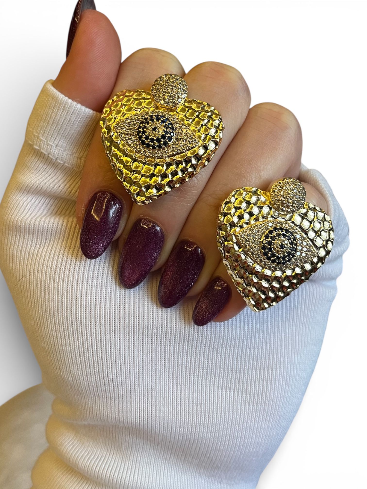 ✨ Kalp formunun zarafeti ve nazar gözünün güçlü sembolizmi bu özel tasarım küpede buluşuyor.