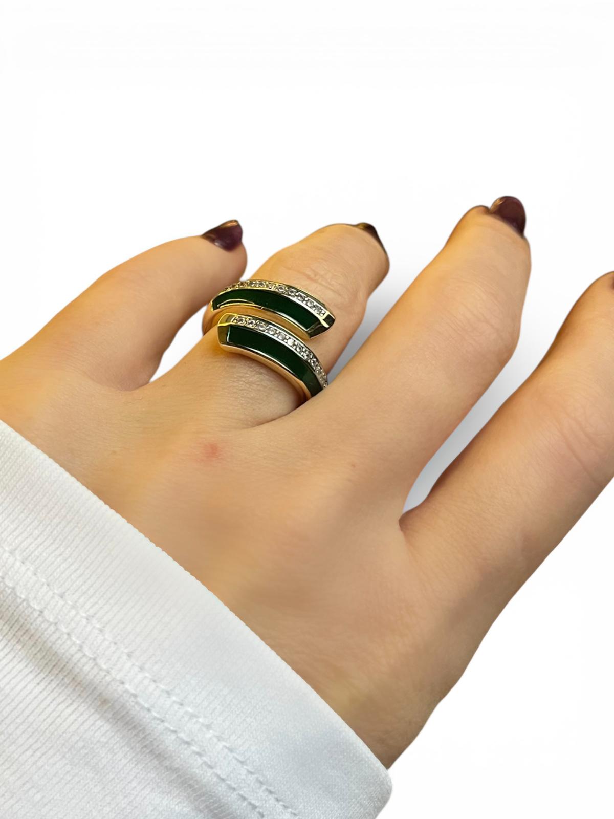 Yeşil Zirkon Taşlı Sarmal Yüzük